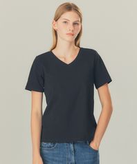 우먼 브이넥 스판 슬림핏 반팔티셔츠 블랙 LATS0204