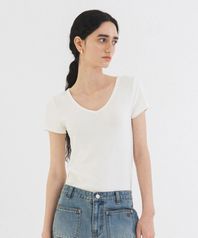SITP5202 레트로 브이넥 슬림 반팔티_Ivory