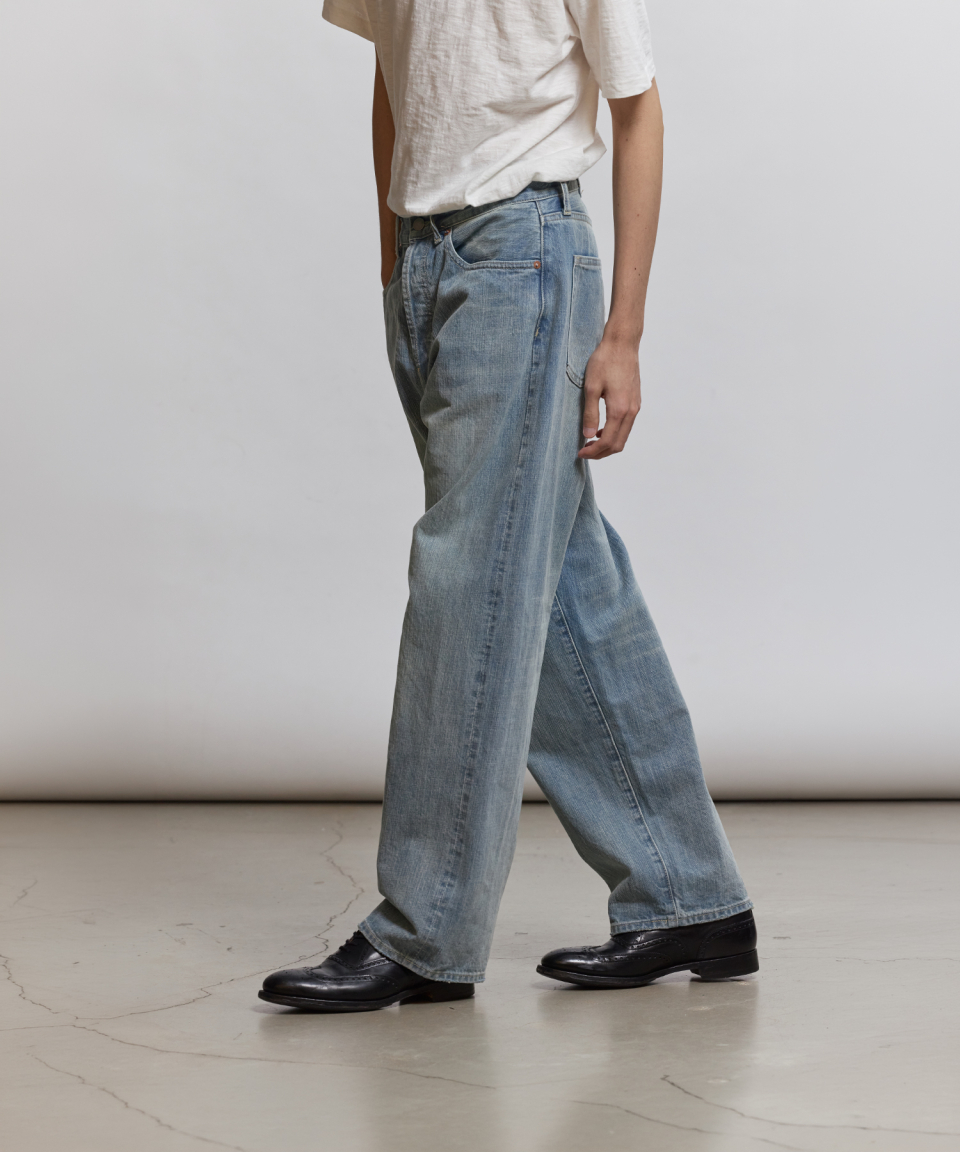 밑위가 깊고 루즈한 실루엣의 미드 웨이스트 핏을 구현해 당시의 시대감을 재현했으며, 구리 리벳이 적용되어 빈티지 무드와 견고함을 한층 강화했습니다.