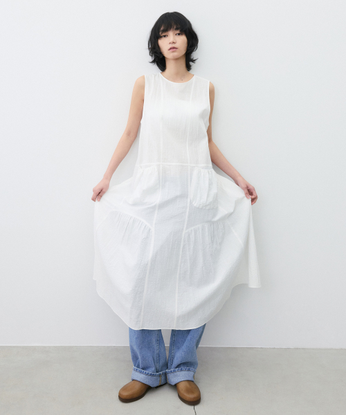 (우먼)에이프런 코튼 드레스 화이트