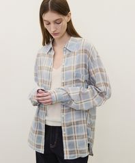 (우먼)시어 체크 셔츠 라이트 블루