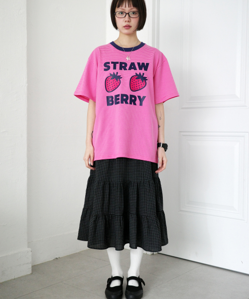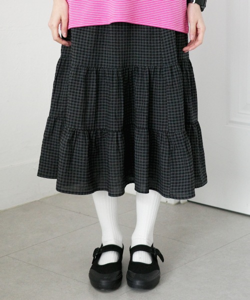 Check Banding Long skirt [Charcoal]