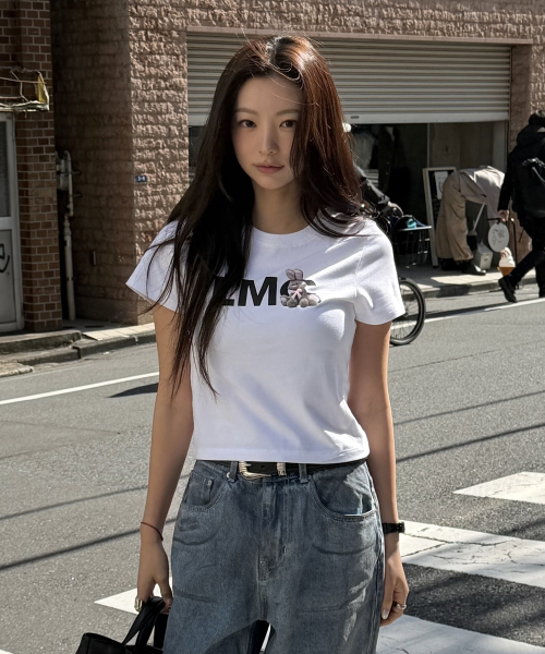 [경은 착용] WM LACE HEART CROPPED TEE charcoal