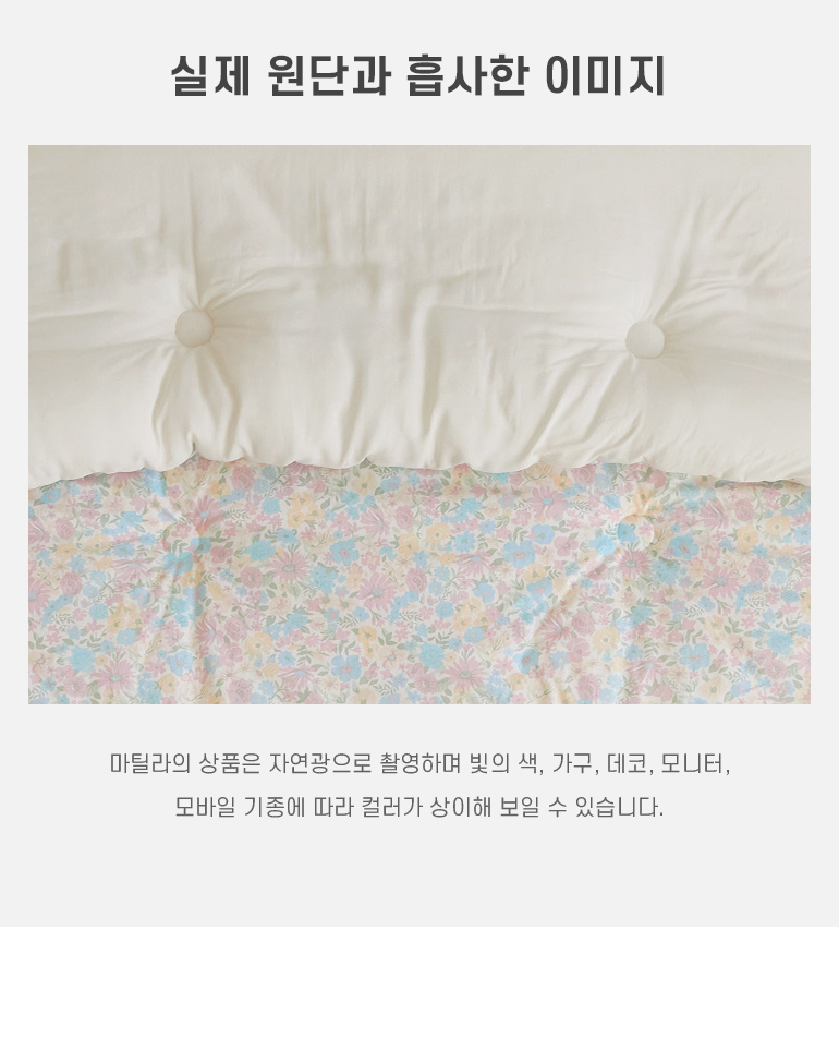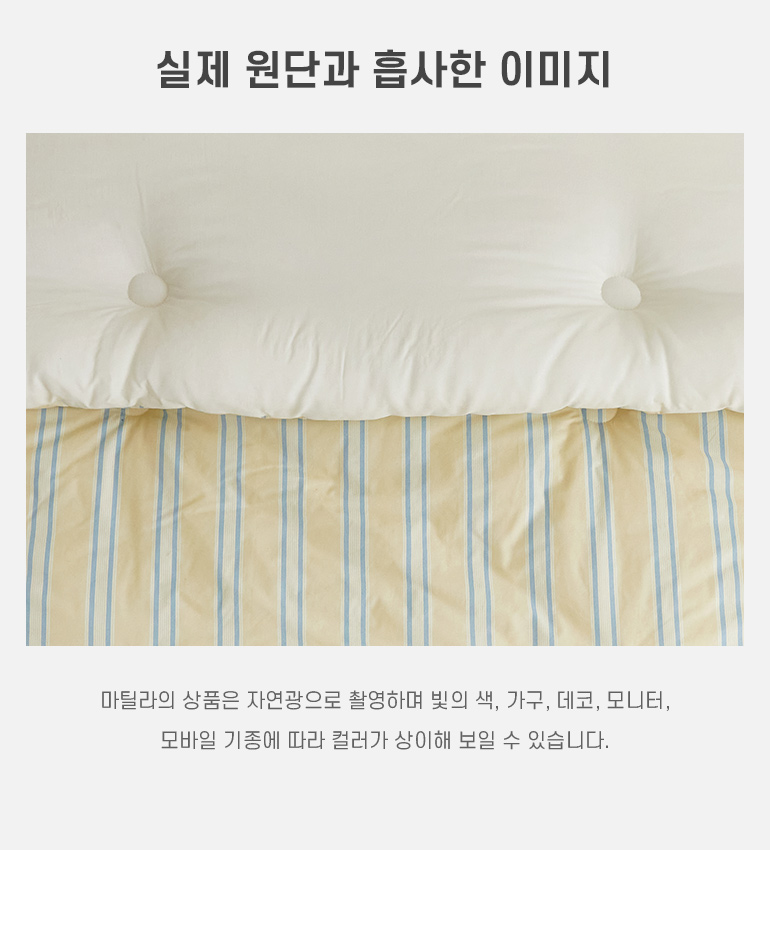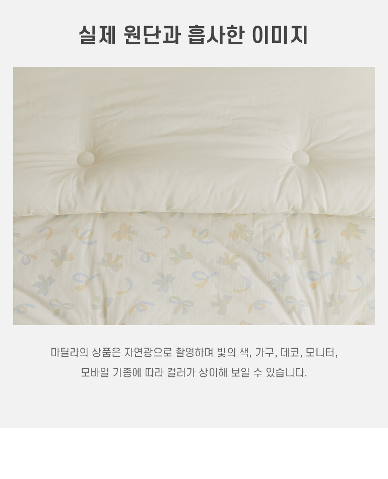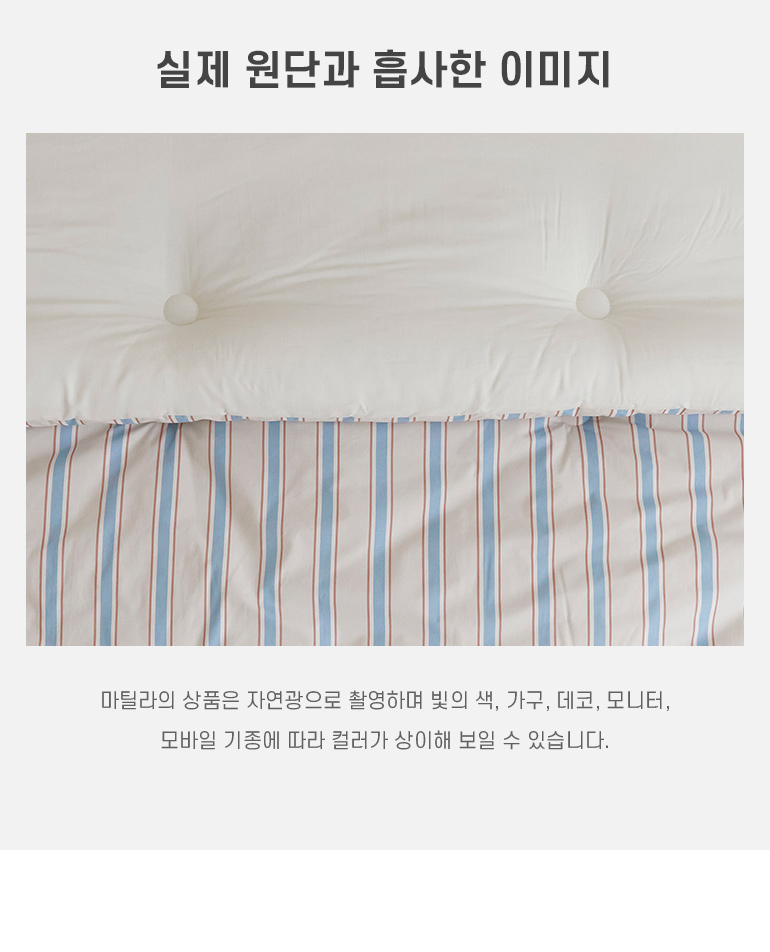 마틸라(MAATILA)는 원단부터 제작까지 국내에서 이루어지는 브랜드입니다. 자연을 모티브로 한 유니크한 디자인으로 품질 좋은 국내산 소재를 연구하며 숙면에 가장 적합한 침구와 패브릭 제품을 개발하여 리빙 트렌드를 제안합니다.