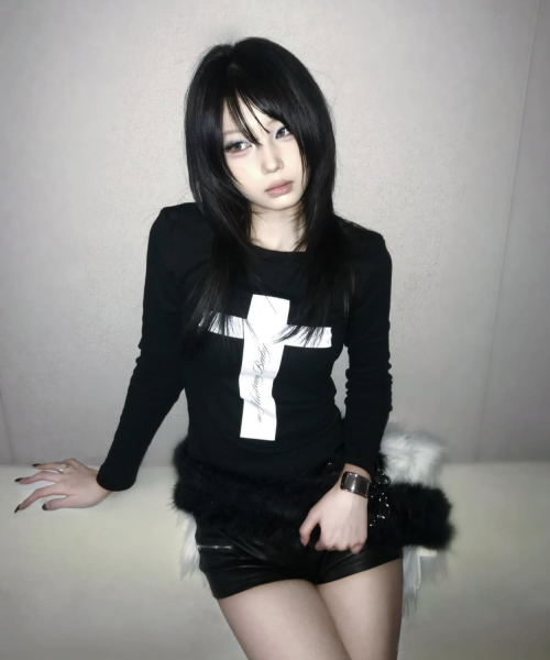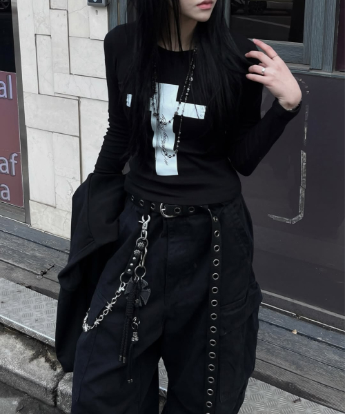 무스탕 크로스 슬림핏 롱슬리브 (블랙)
