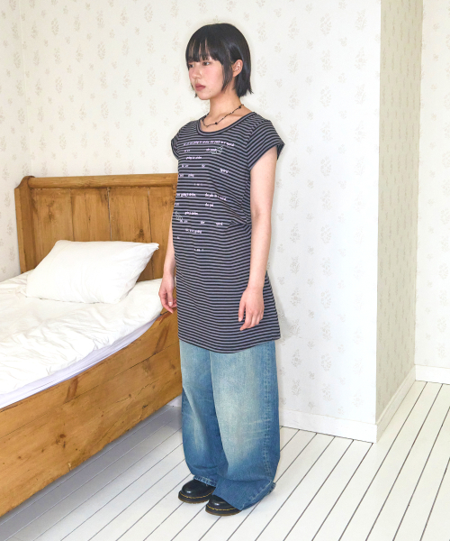 윙 스트라이프 코튼 원피스 [크림]