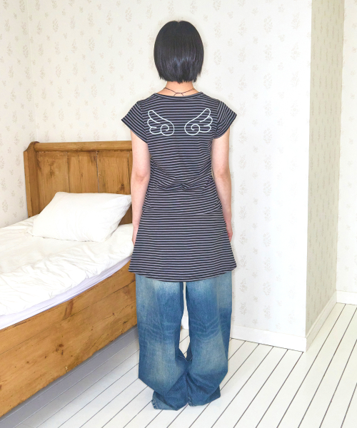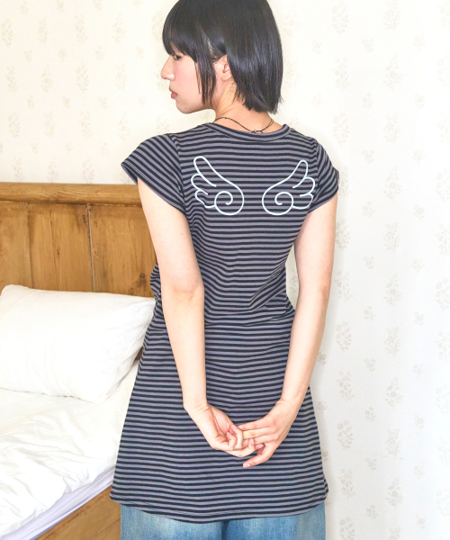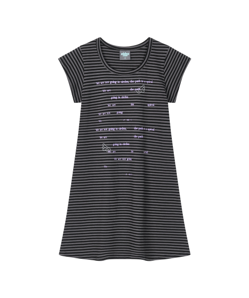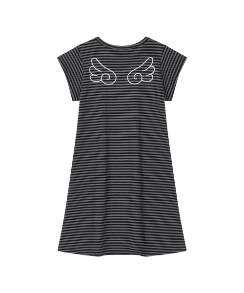 윙 스트라이프 코튼 원피스 [블랙]