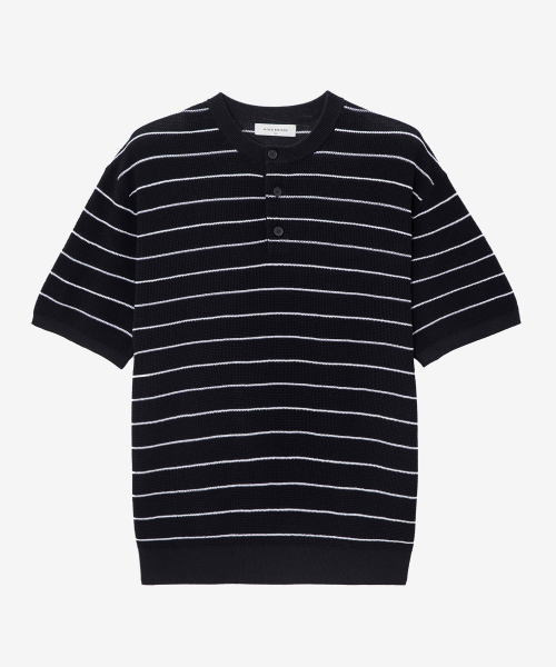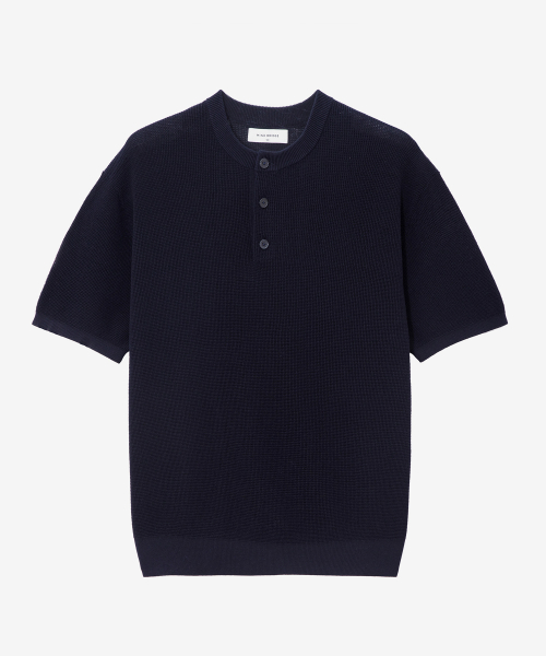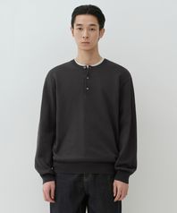 워셔블 수피마 코튼 헨리 넥 니트 [다크 그레이]