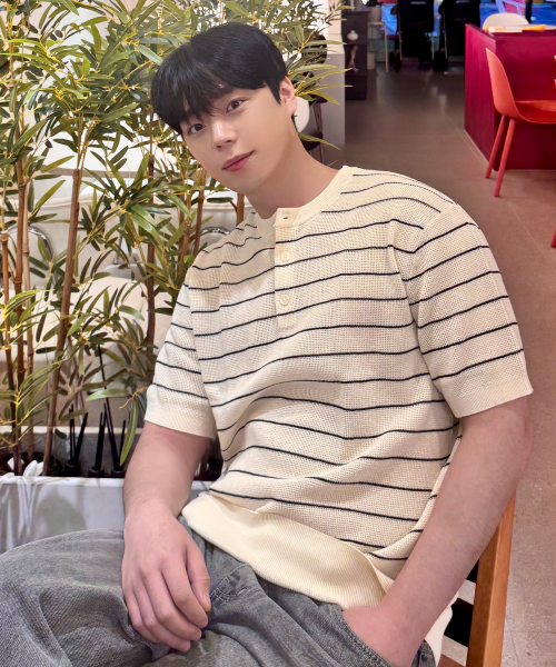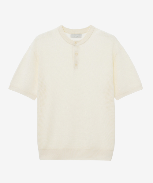 [2PACK][ON]린넨 라이크 헨리넥 오버핏 반팔 니트 - 5color