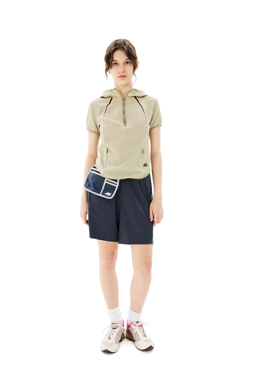 · 여성용 반팔 하프집 후디 탑