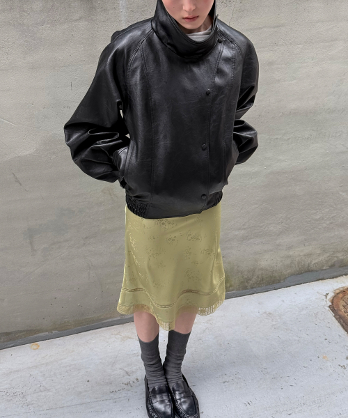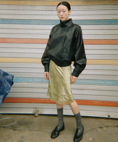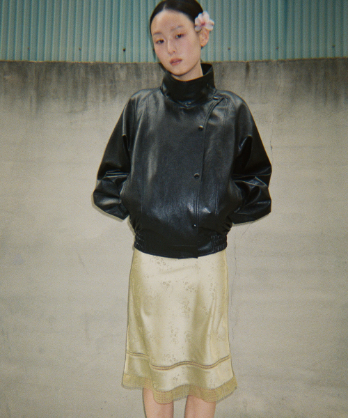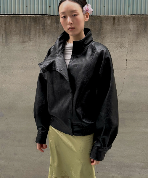 [예약 배송 안내] 3/23 이후 주문 건 : 4/3 순차 발송 예정 Asymmetrical Leather Jacket 비대칭 레더 자켓 길영의 시그니처 비대칭 레더 자켓입니다. 와이드 카라는 모두 잠갔을 때와 자연스럽게 늘어뜨렸을 때 서로 다른 실루엣을 연출하며, 세미 오버핏에 곡선 형태의 소매 실루엣을 더해 구조적인 균형을 완성했습니다. 베지터블 태닝 램스킨과 유사한 부드러운 터치와 자연스러운 그레인이 특징인 인조 가죽으로 제작되었습니다. 무광 블랙 코팅 스냅 단추로 절제된 마감을 더했습니다. Color: Black Outershell: 100% Polyurethane Lining: 100% Polyester