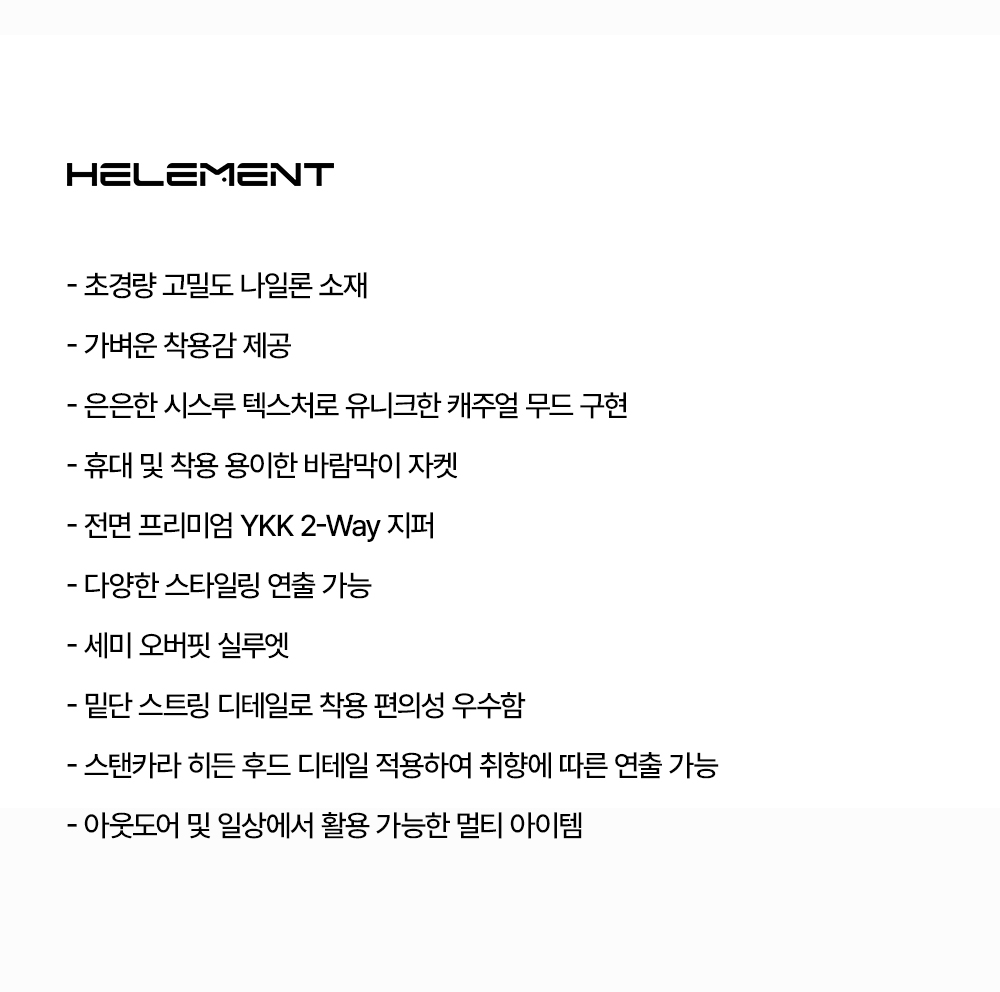 힐리먼트(HELEMENT)는 HEALING과 MOMENT의 합성어로 자연과 지속 가능성에 대한 의지를 뜻합니다. 환경을 사랑하고 후손에게 깨끗하고 아름다운 자연을 전해주기 위한 하나의 철학과 행동입니다. 자연 안에서, 자연과 함께 건강한 삶을 지향하고 힐링 하는 모든 순간 순간을 담아 지속가능한 삶을 위해 실천하고 향유하는 브랜드입니다.