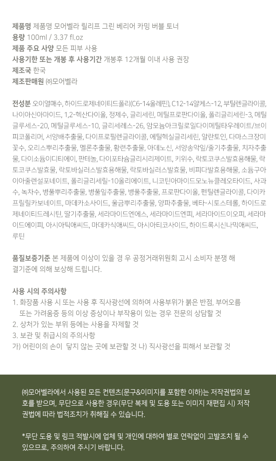 릴리프 그린 베리어 카밍 버블 토너