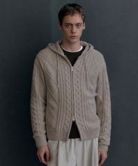 아란 케이블 니트 후디드 집업 [오트밀]