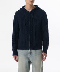 아란 케이블 니트 후디드 집업 [네이비]