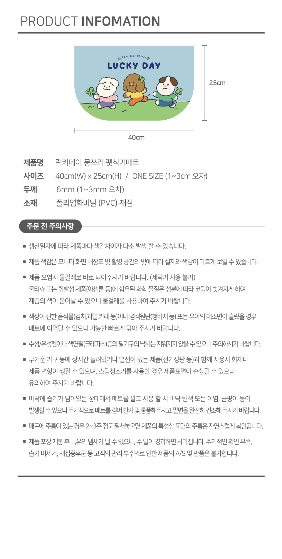 럭키데이 뭉쓰리 펫식기매트