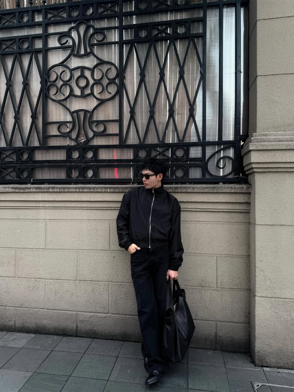 STRUCTURED PINSTRIPE BLOUSON JACKET (GRAY)