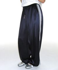 LACE GLOSSY PANTS NAVY