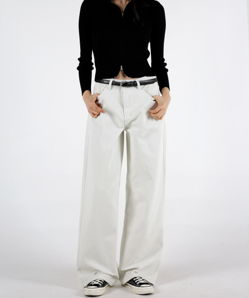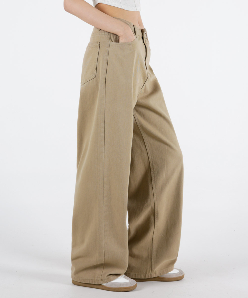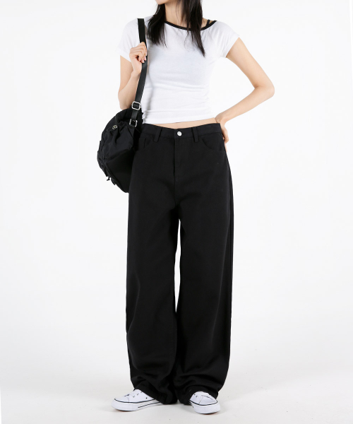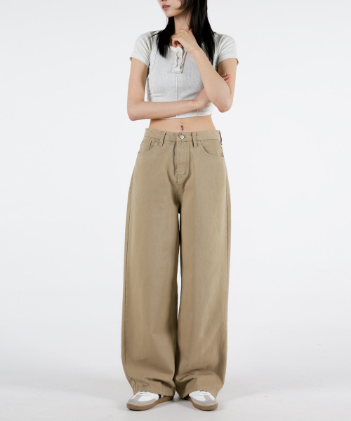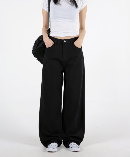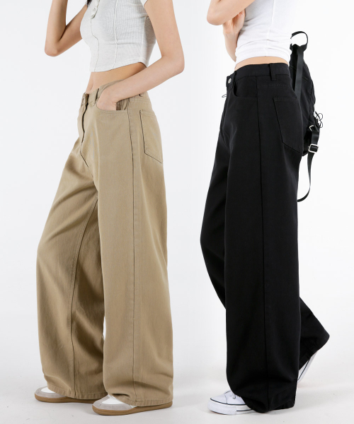 여자 숏롱 워싱코튼 일자 와이드팬츠 4COLOR