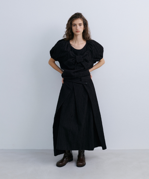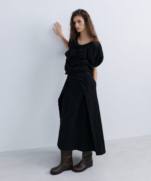 ORIGAMI RIBBON CROP SHIRT - BLACK