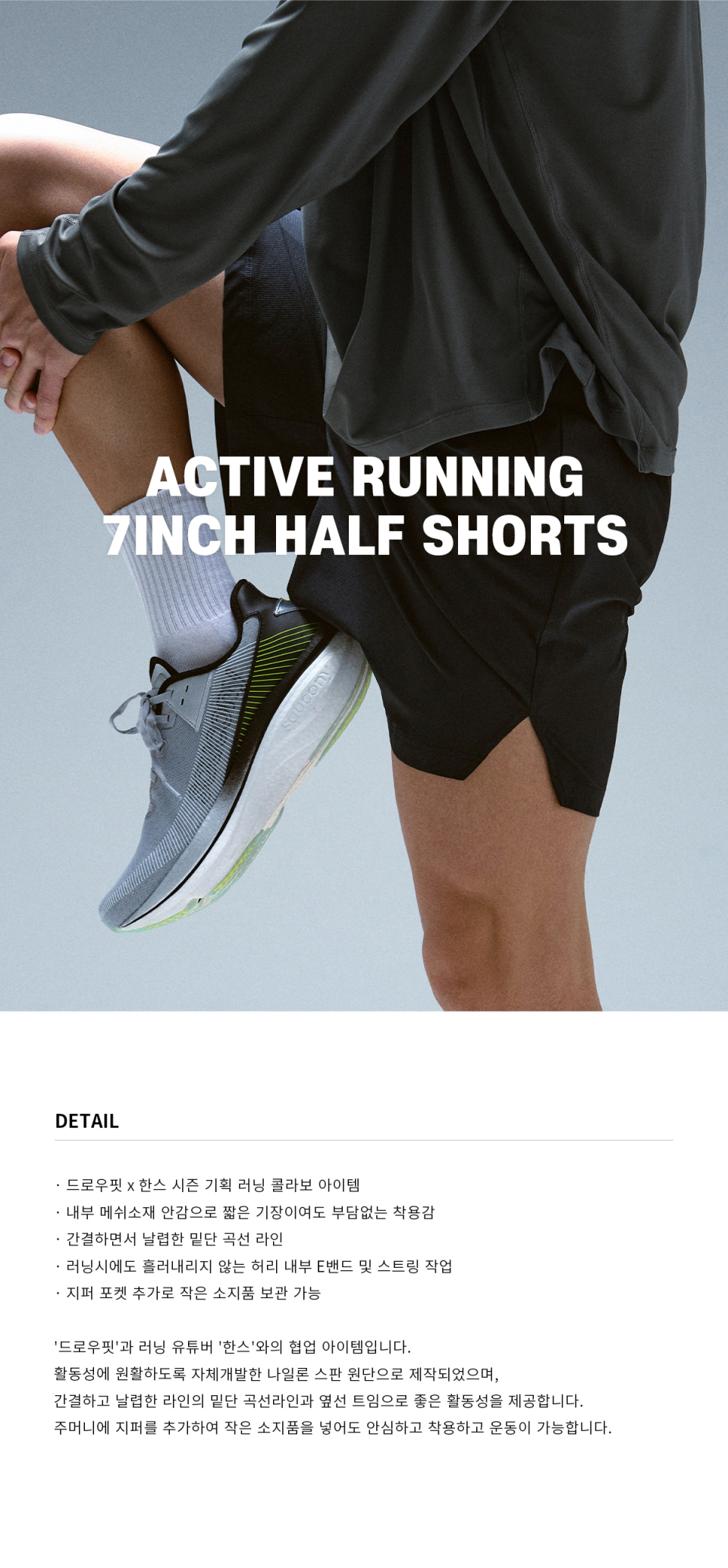 [한스X드로우핏] 액티브 러닝 7인치 하프 쇼츠 [4color]