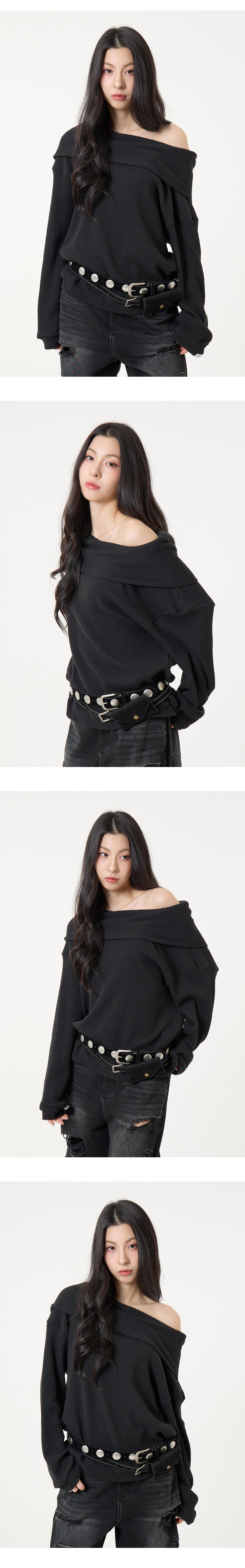 와이드 레이어드 더블 벨트 블랙