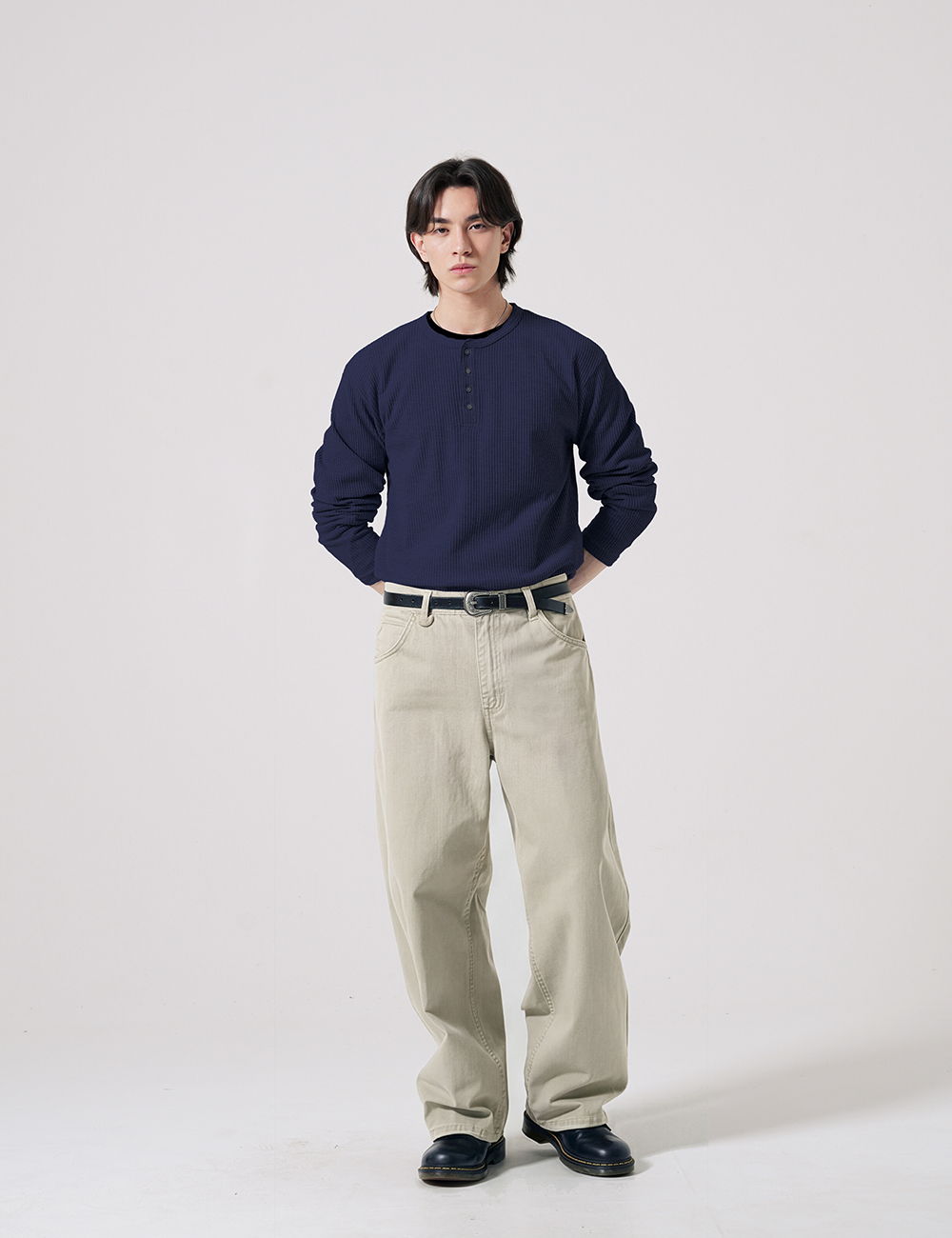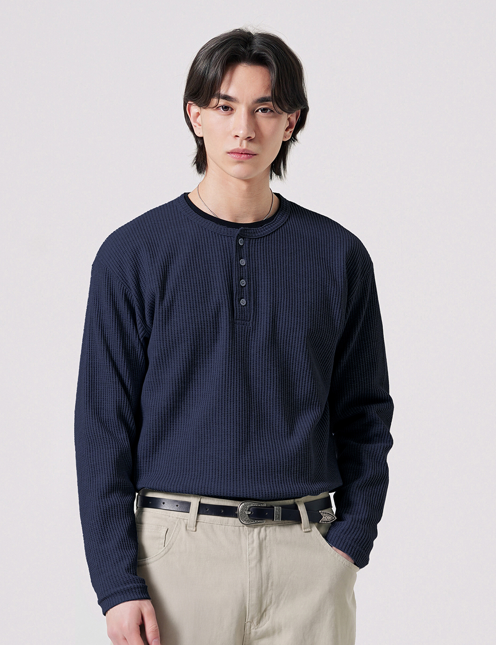 텍스처 헨리넥 긴팔티셔츠 네이비 SJLT2690