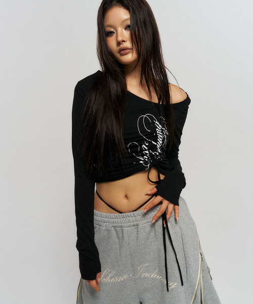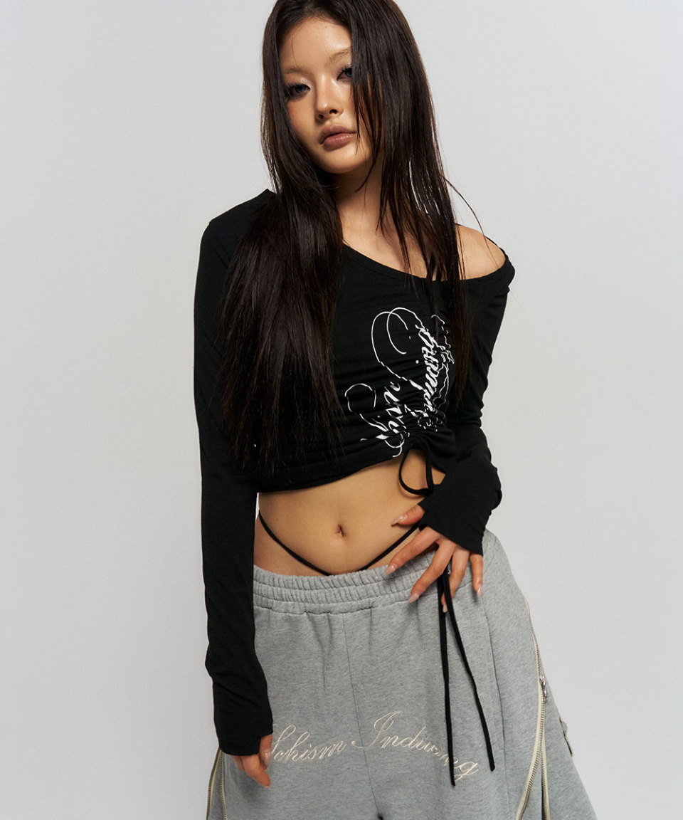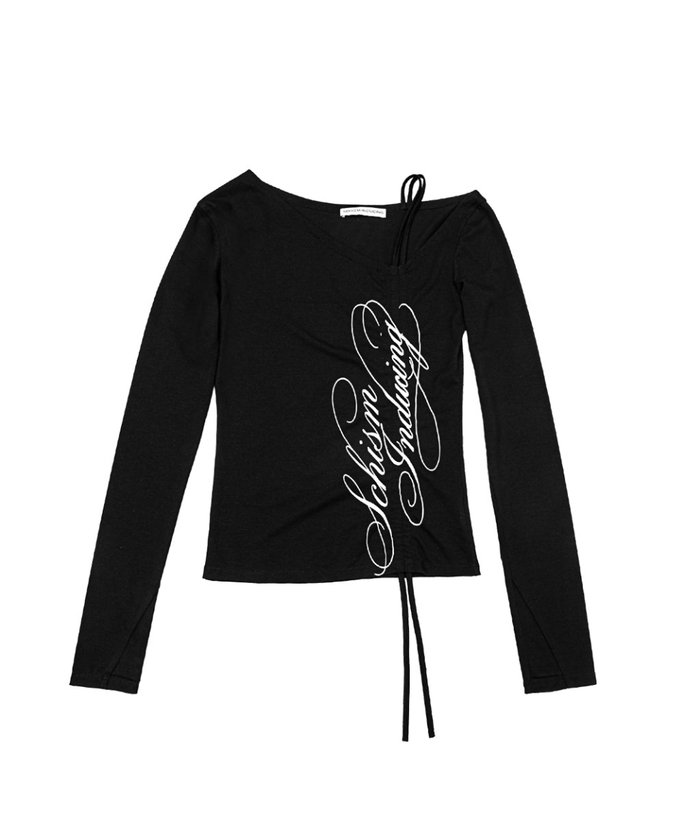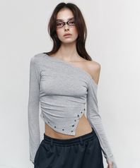 Remy Unbal Shirring Long Sleeve Top (Melange Grey)