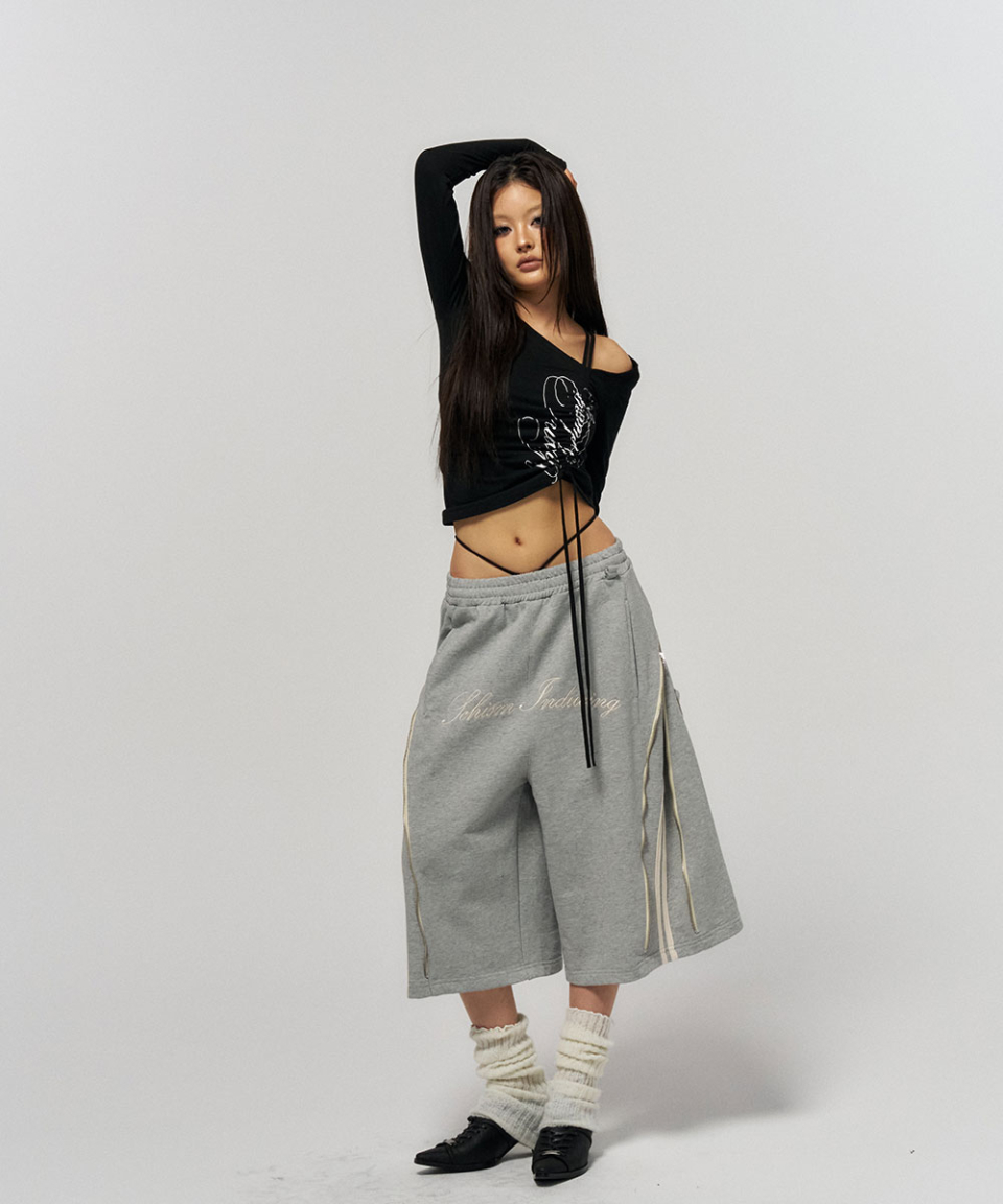 STRIPE JERSEY WIDE PANTS [CHARCOAL]