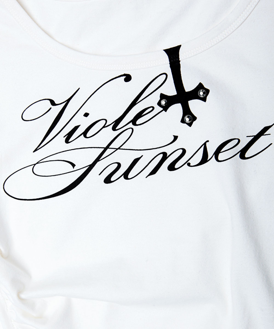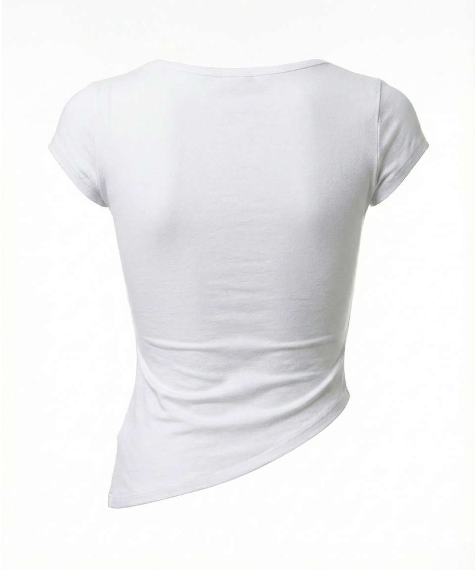 UNBALANCED SHIRRED T SHIRT WHITE
