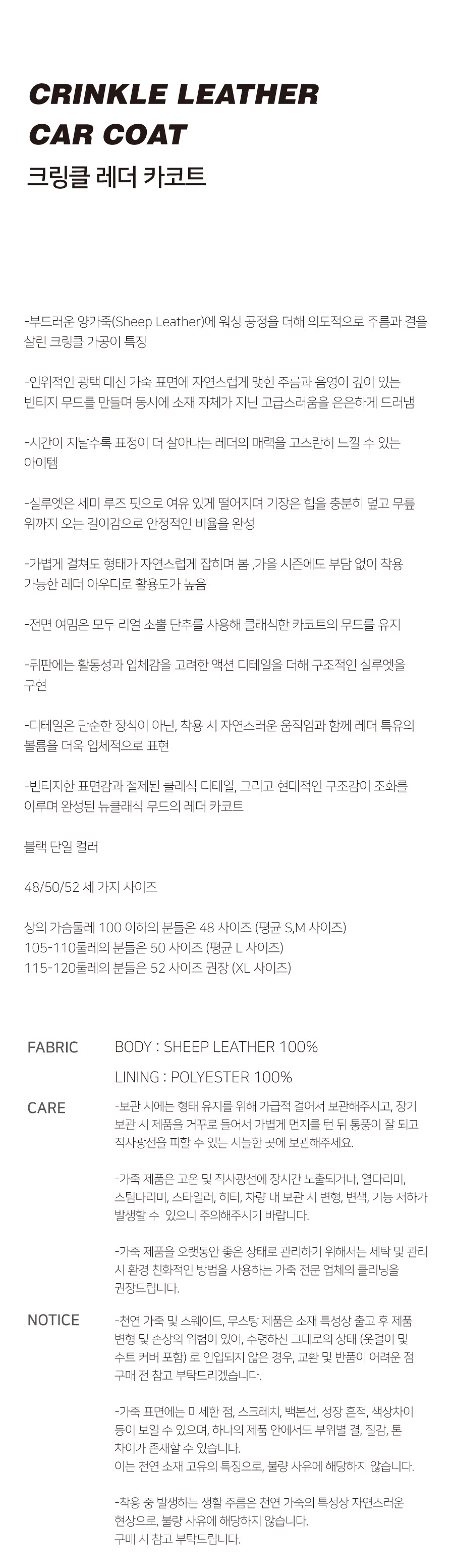 크링클 레더 카코트 (블랙)
