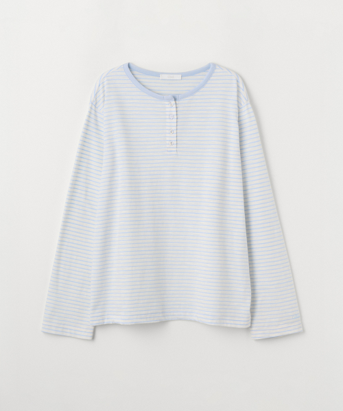 STRIPE HENLEY NECK T-SHIRT_SKY BLUE
