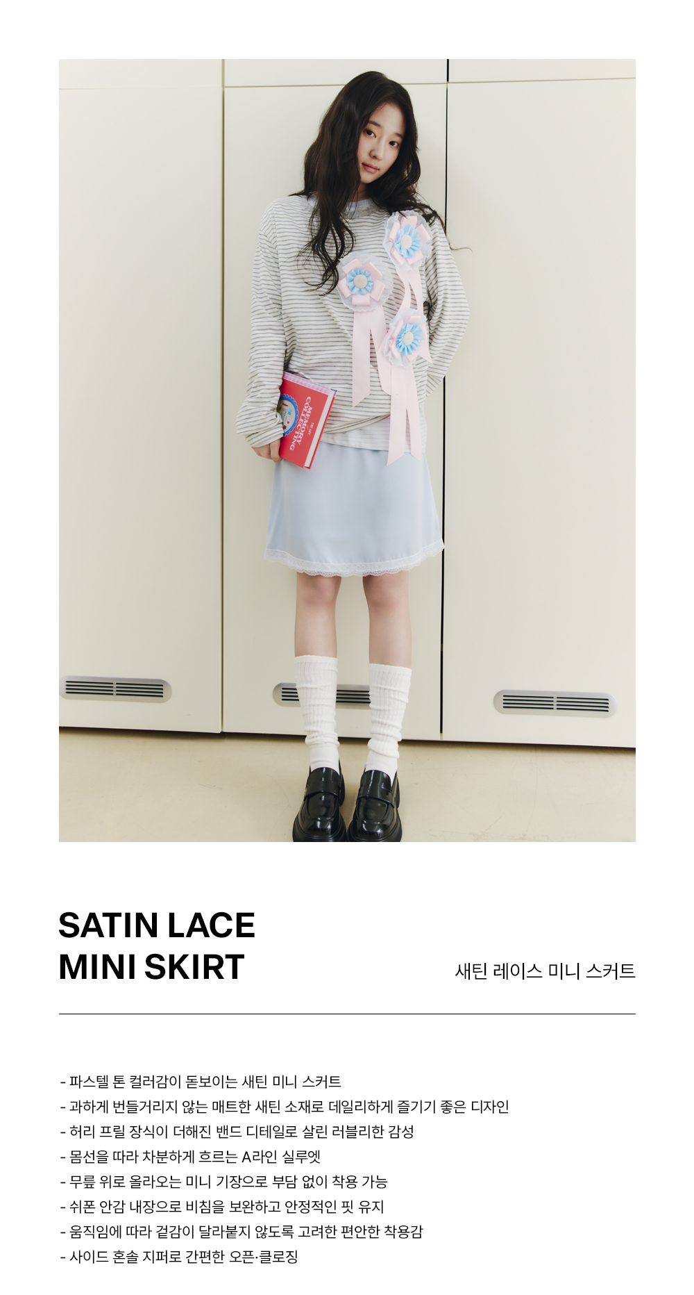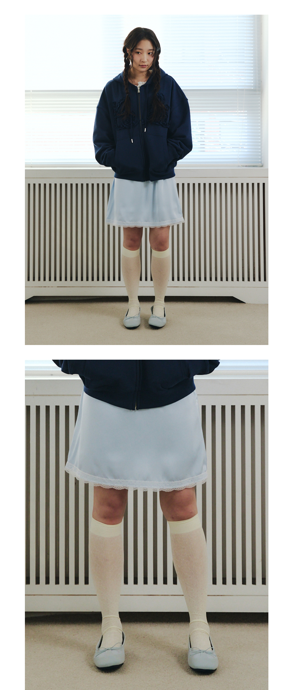 SATIN LACE MINI SKIRT_SKY BLUE