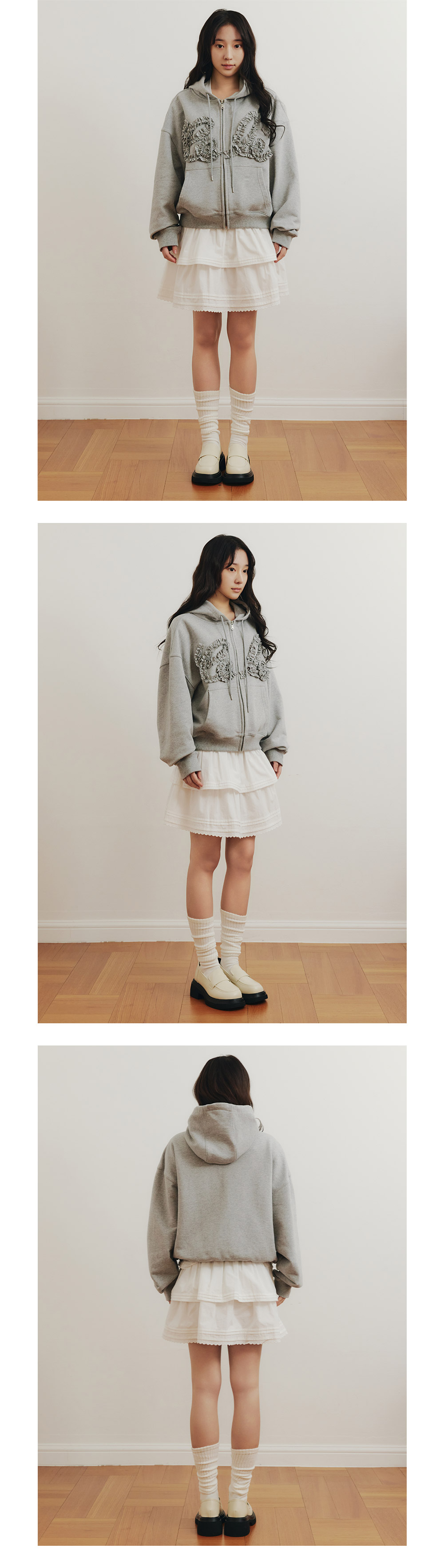 CHECK HOODIE RUFFLE DRESS_BEIGE