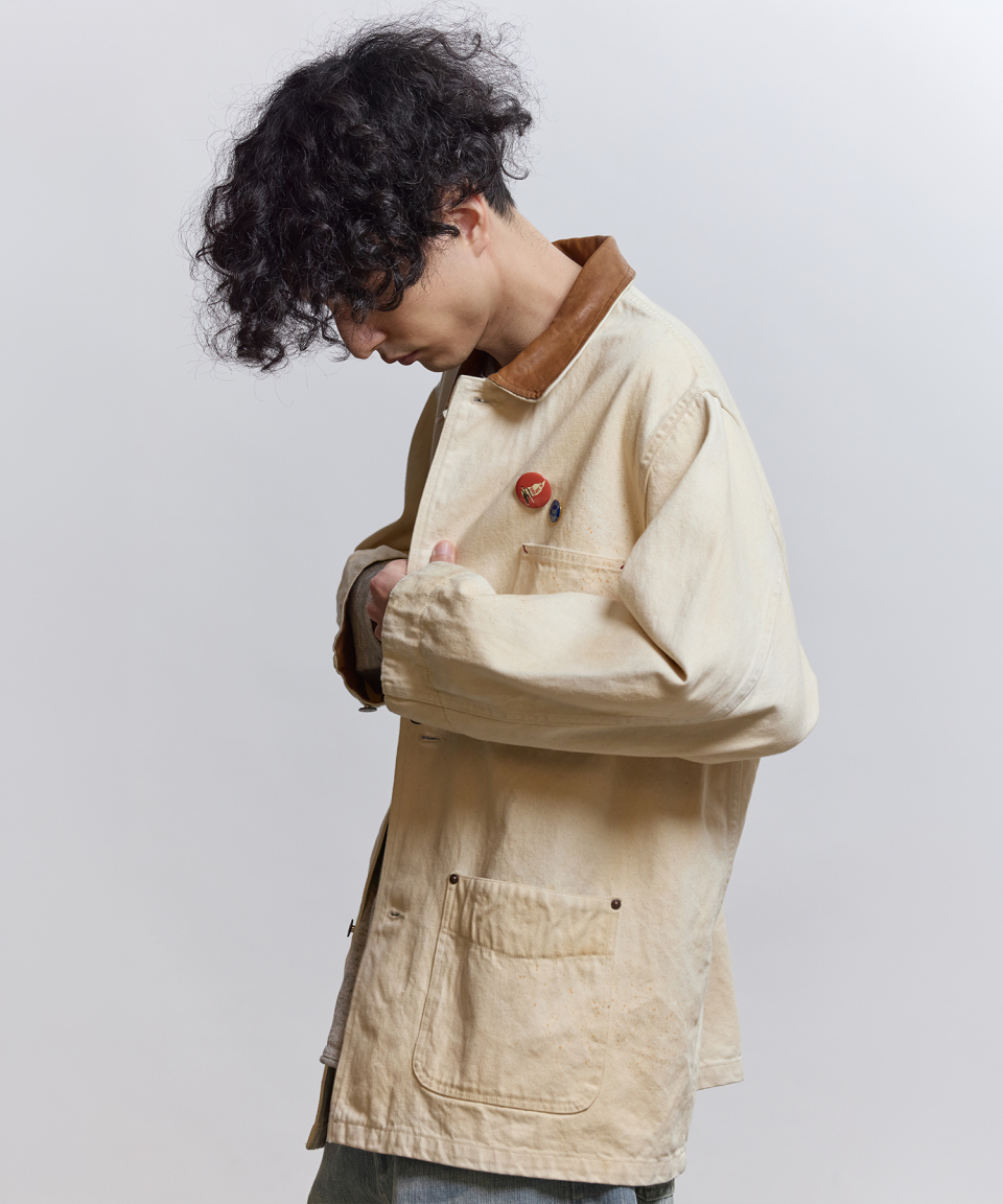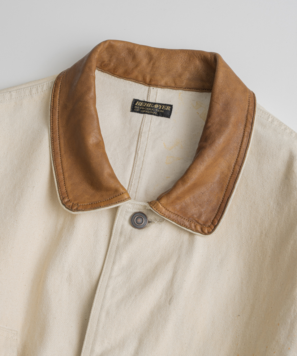 WASHED LEATHER COLLAR COVERALL JACKET은 빈티지 커버올을 기반으로, 비헤비어의 시선으로 재해석한 커버올 자켓입니다.