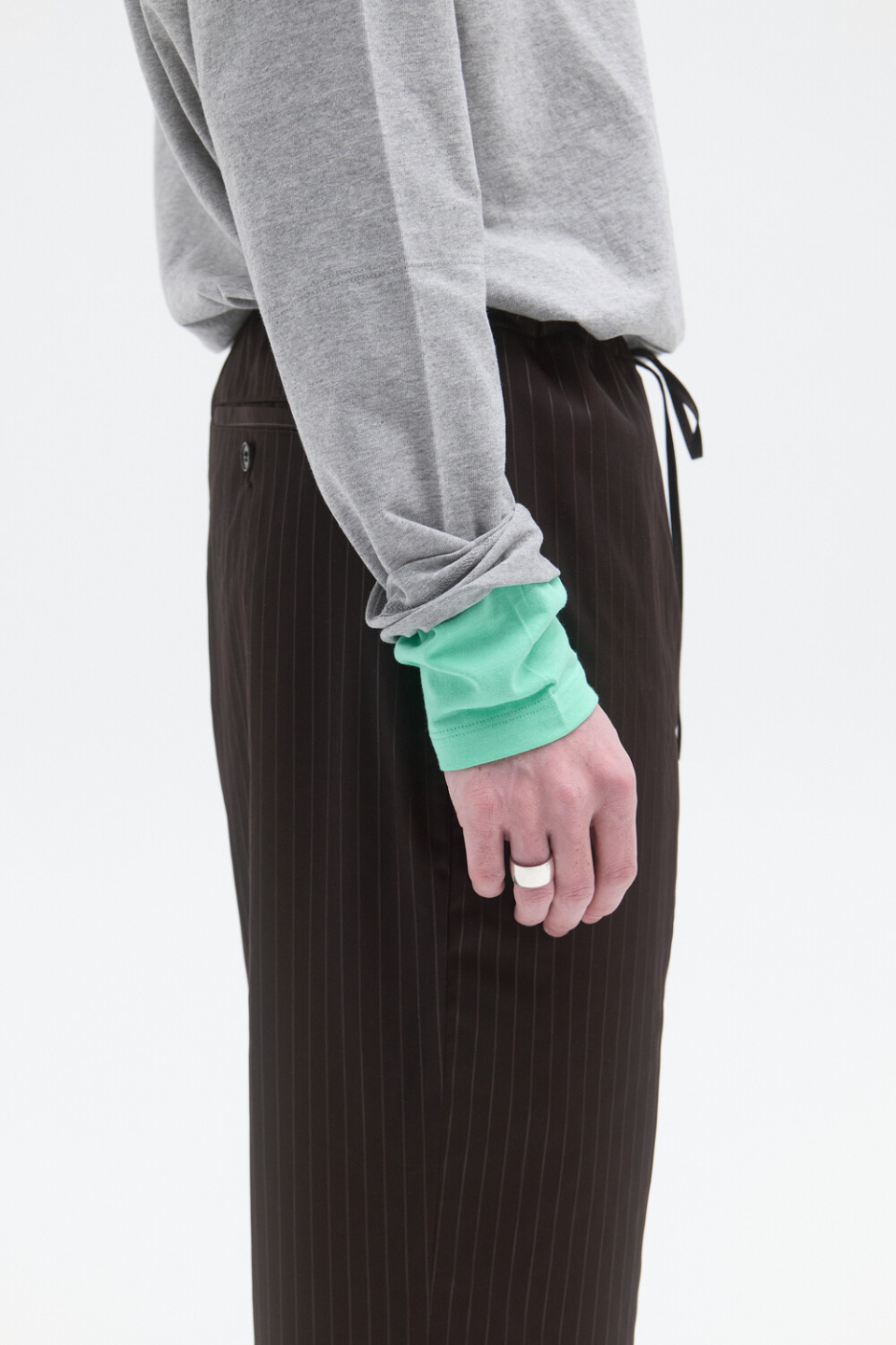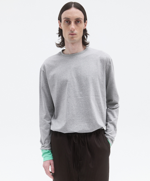 -소매의 1/2 기장만 레이어드 되있는 디자인으로 다양한 스타일링이 가능한 져지탑