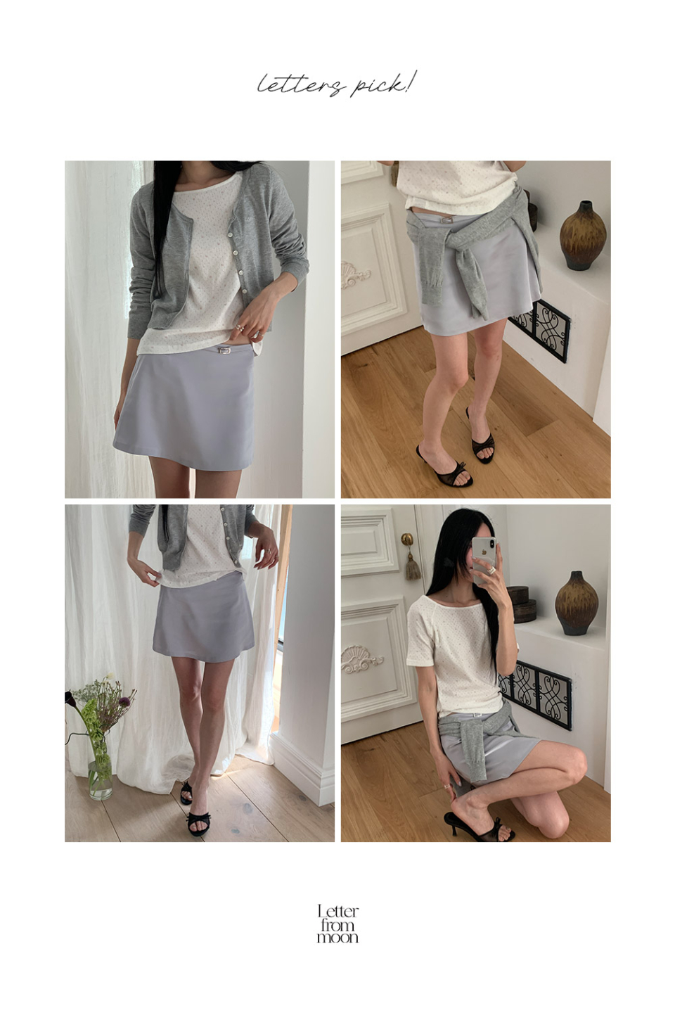 레터즈 사틴 벨트 미니 스커트 ( 그레이라벤더 )