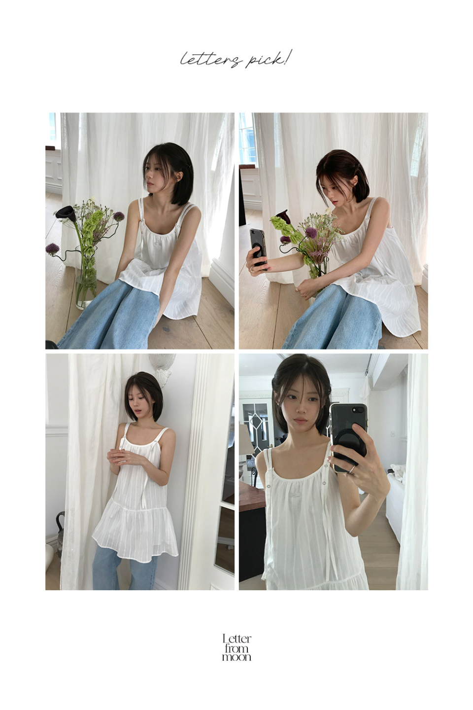 레터프롬문(LETTER FROM MOON)은 이름에 어울리는 로맨틱&레트로 무드의 옷을 만드는 브랜드입니다. 여성 고객을 타깃으로 아이템마다 레터프롬문의 개성이 들어가게끔 정성을 다해 디자인합니다. 특히 디자이너 브랜드의 의류는 가성비가 좋지 않다는 편견을 깨기 위해 합리적인 가격의 차별화된 아이템을 자신 있게 선보입니다.