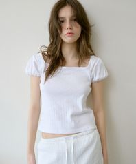 레터즈 스퀘어넥 퍼프 반팔티 ( 화이트 )