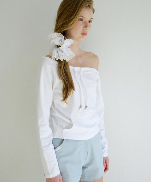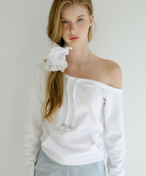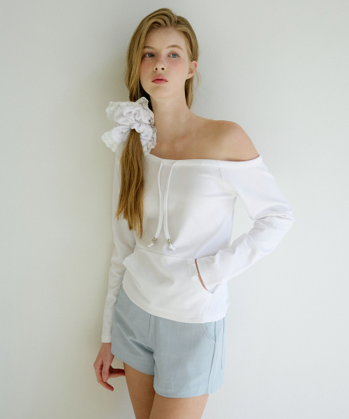 레터즈 오프숄더 포켓 티셔츠 ( 아이보리 )