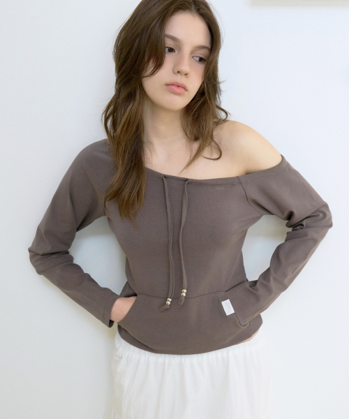 LETTERING OFF-SHOULDER TIE LONG SLEEVE_6COLOR