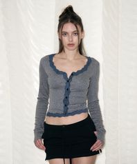 Mila Lace Long Sleeve Top (Melange Charcoal)
