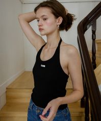 레터즈 라벨 홀터넥 탑 ( 블랙 )