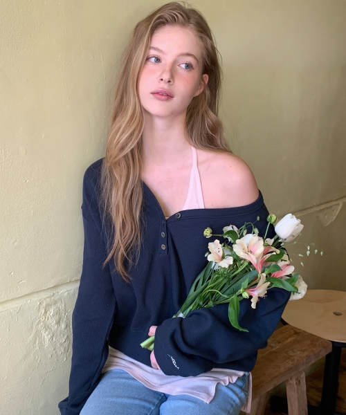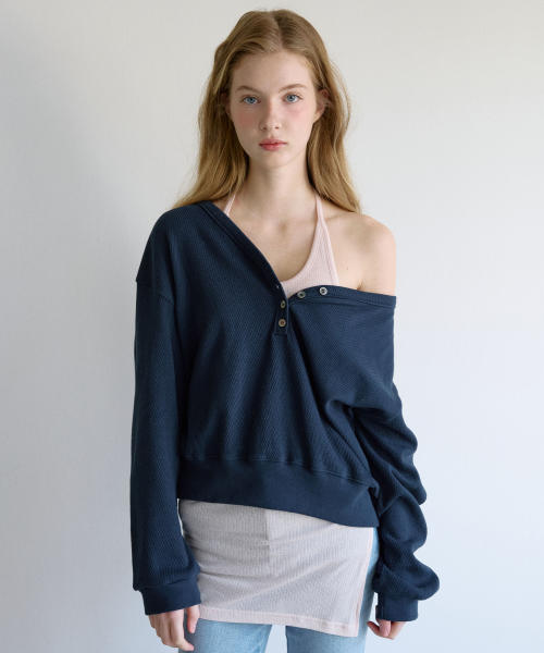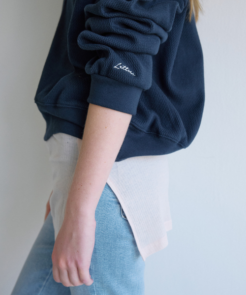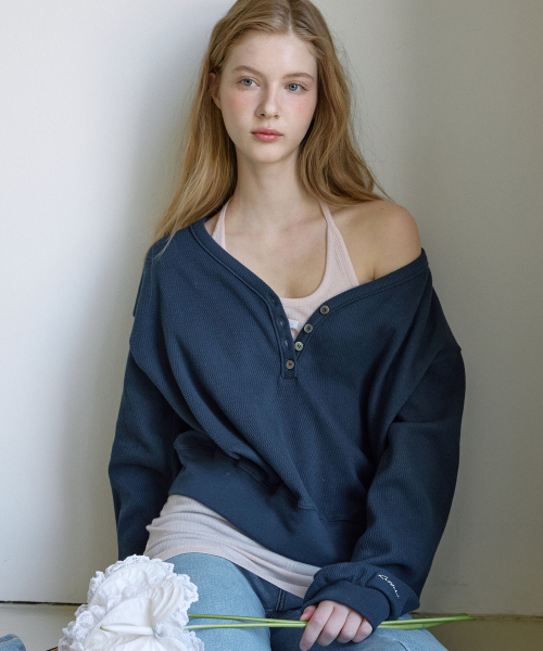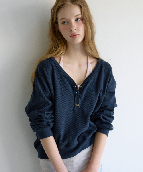 레터즈 브이넥 와플 스웻셔츠 ( 네이비 )