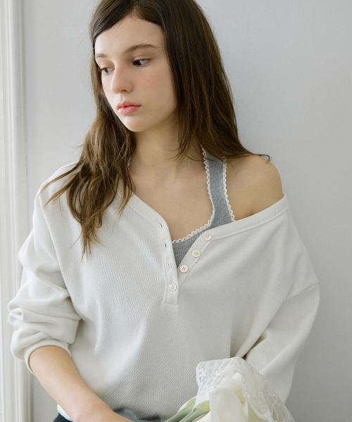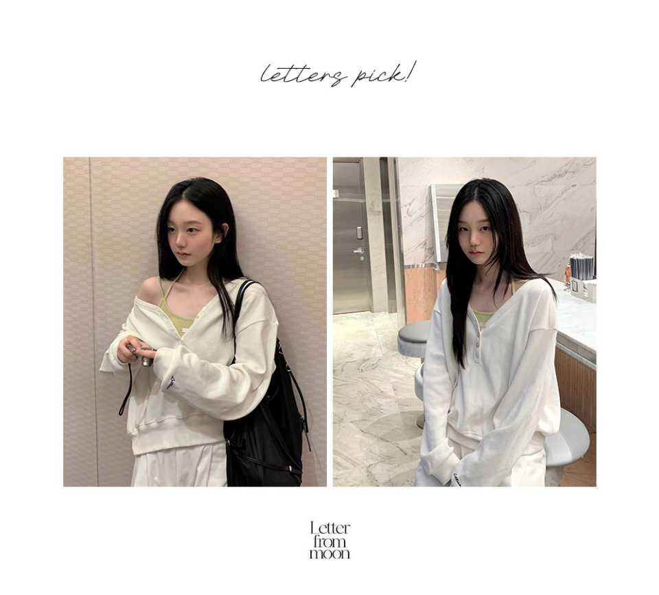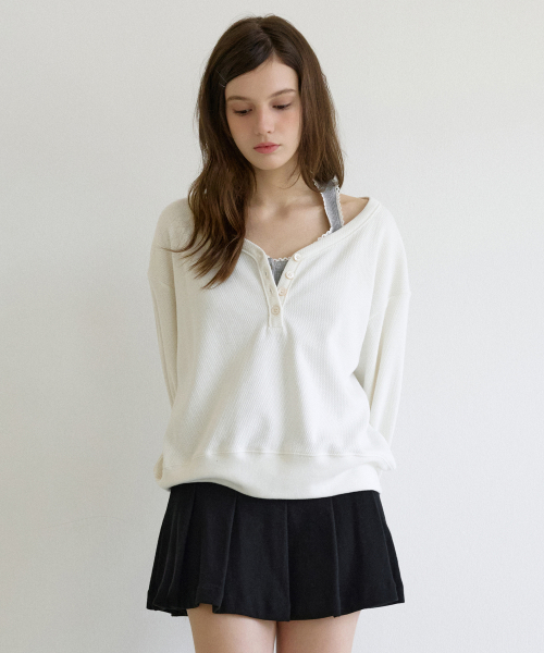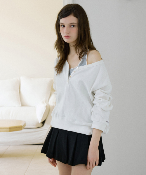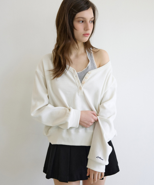 레터즈 브이넥 와플 스웻셔츠 ( 아이보리 )
