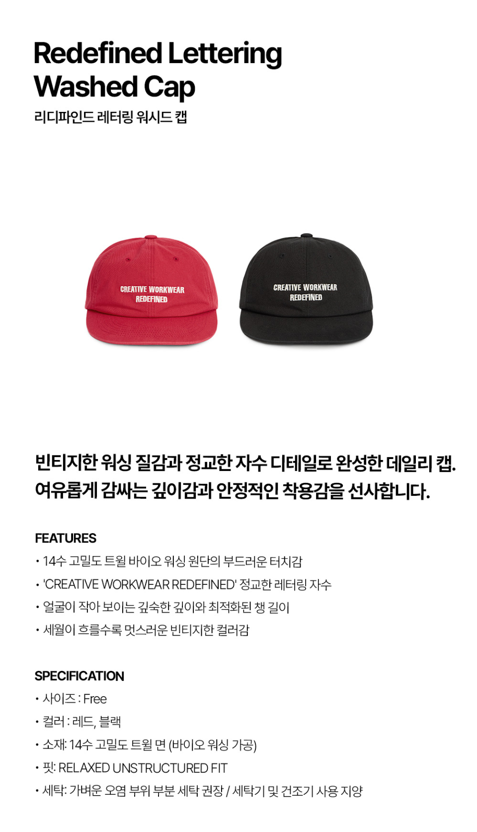 [빅사이즈]리디파인드 레터링 워시드 캡