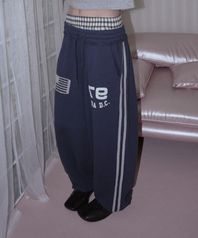 CHECK LAYERED SWEAT WIDE PANTS NAVY