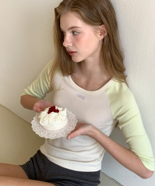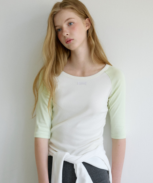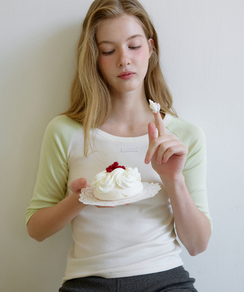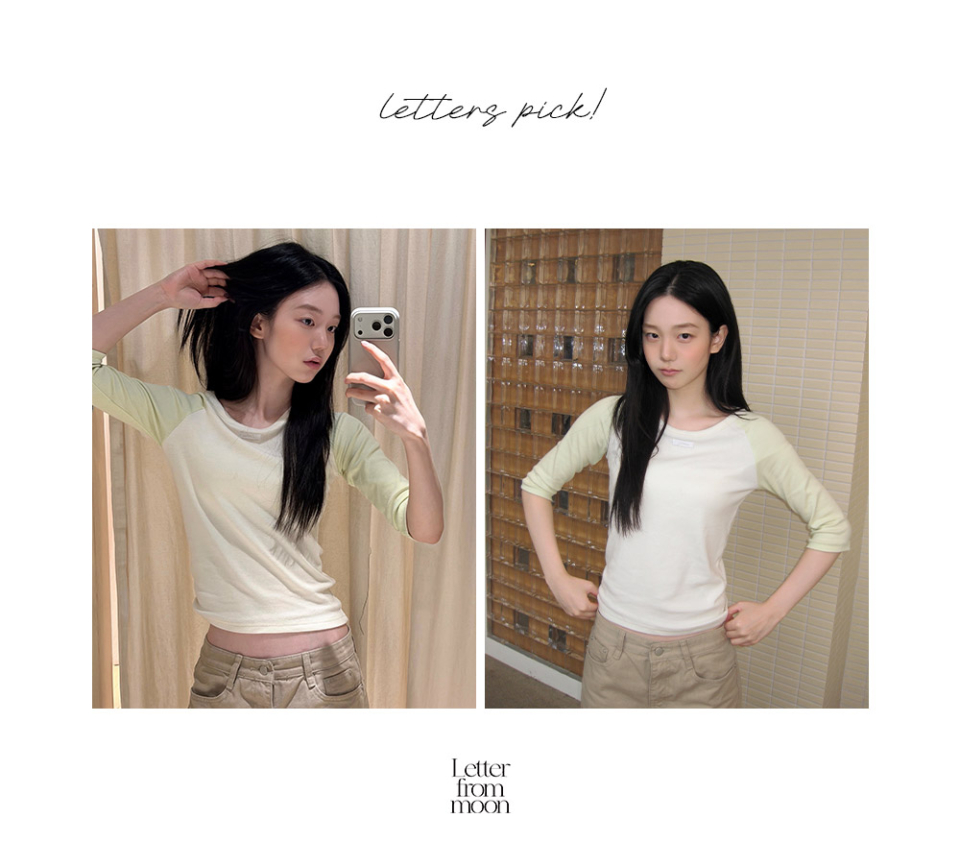 레터즈 래글런 라벨 티셔츠 ( 크림 )