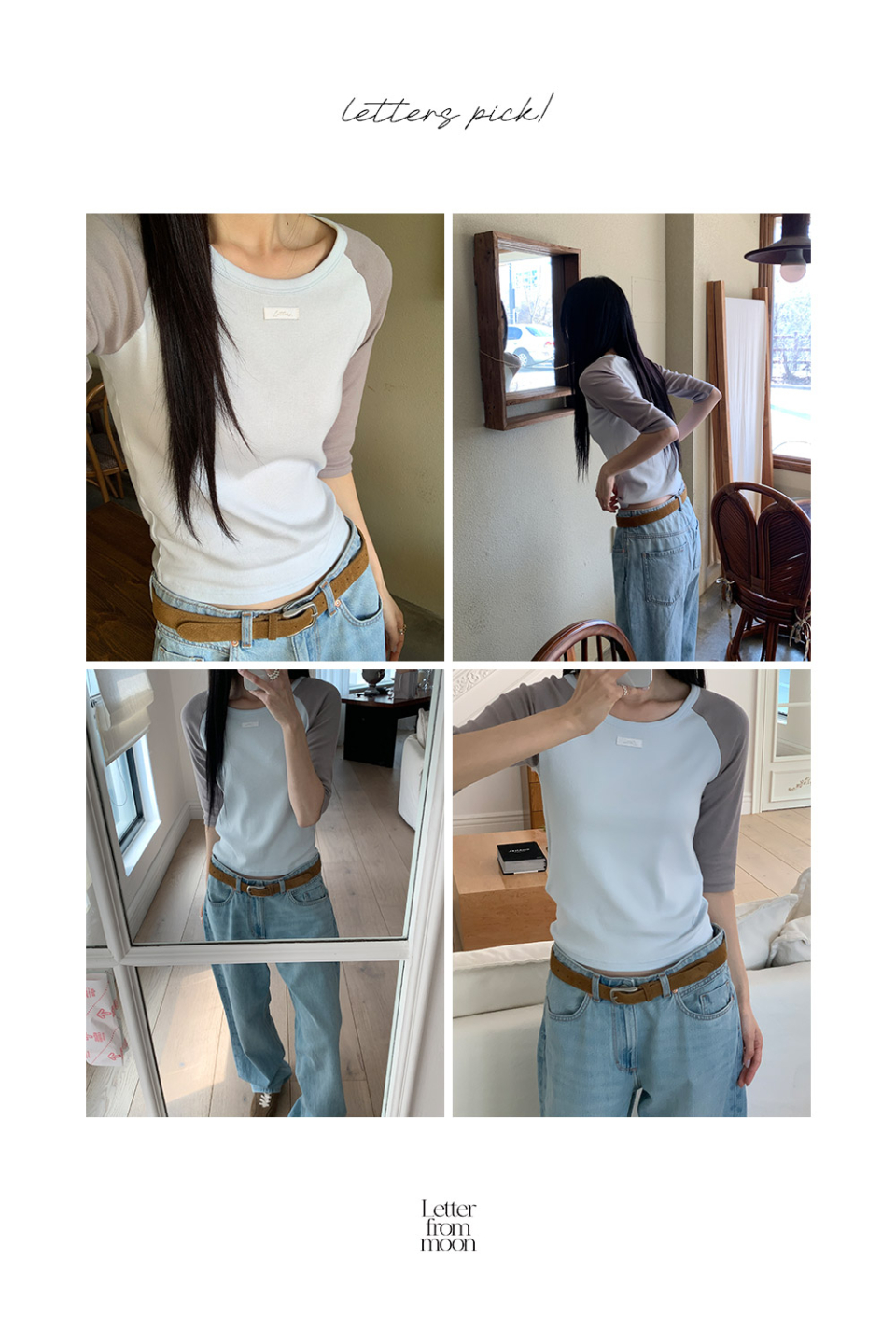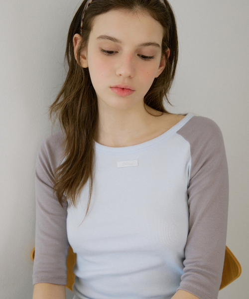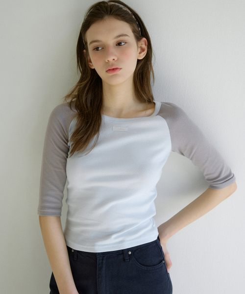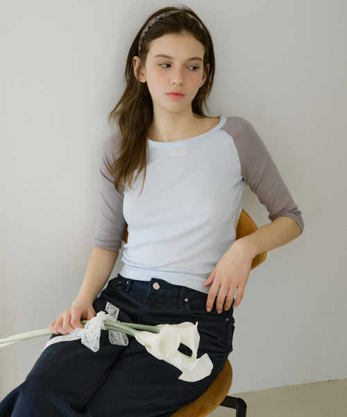 레터즈 래글런 라벨 티셔츠 ( 스카이블루 )