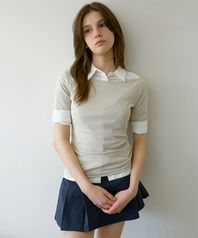 레터즈 더블 레이어드 피케이 카라티 ( 아이보리 )